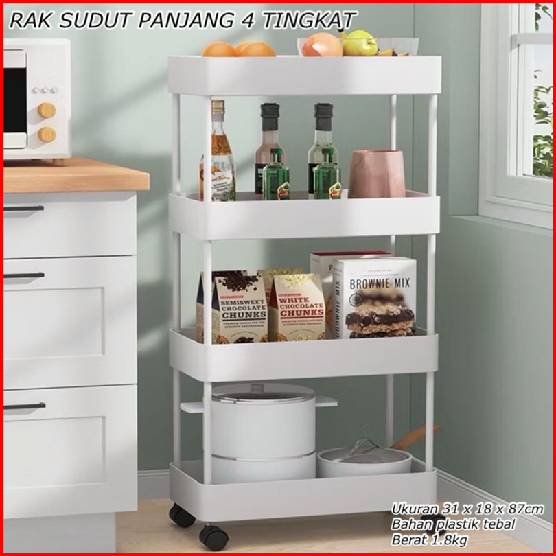 Rak Troli Roda Rak Serbaguna Rak 4 Susun Rak Dapur Rak Sudut Rak Plastik Rak Kamar Mandi