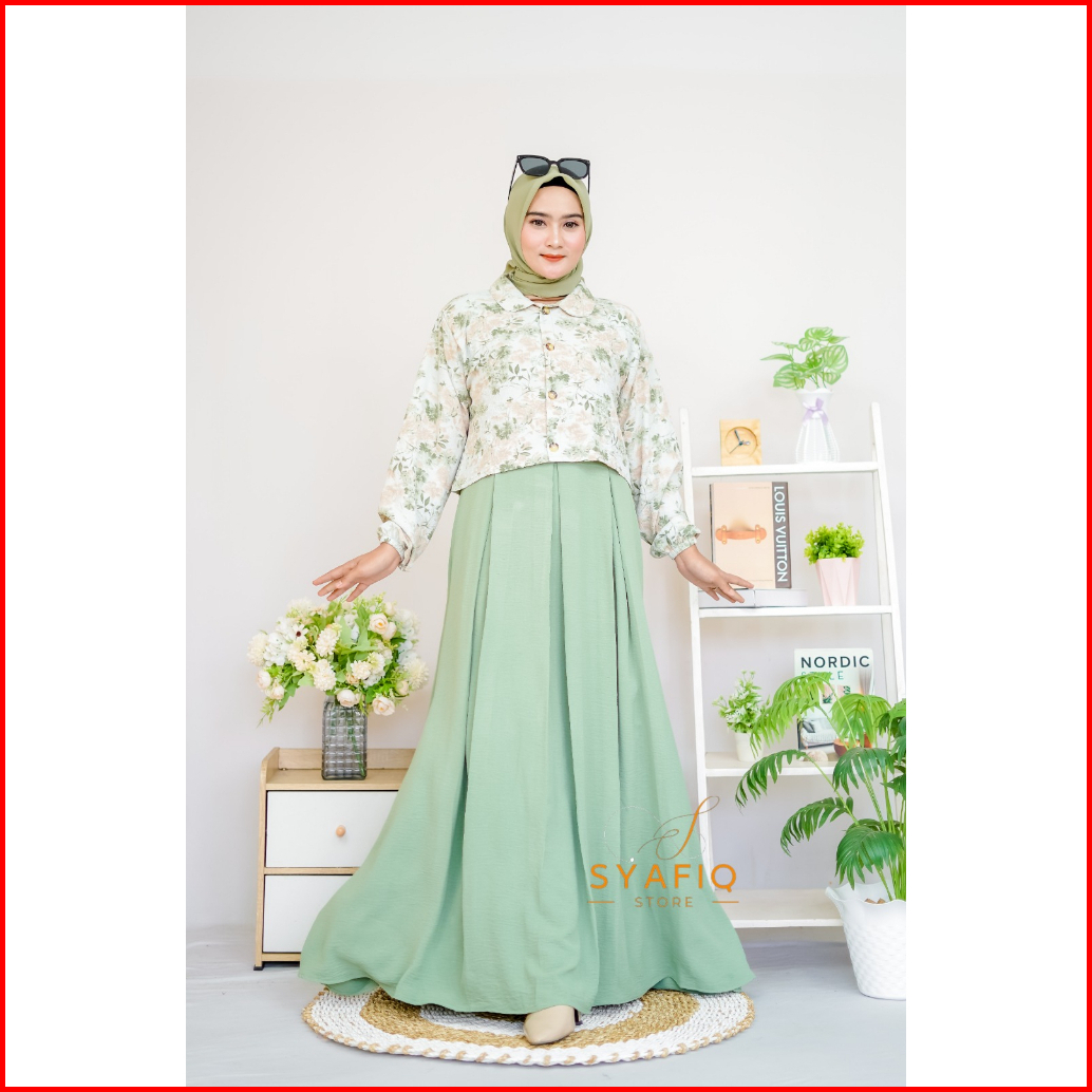 Inara Dress Gamis Crincle Outer Bunga By Syafiq Store