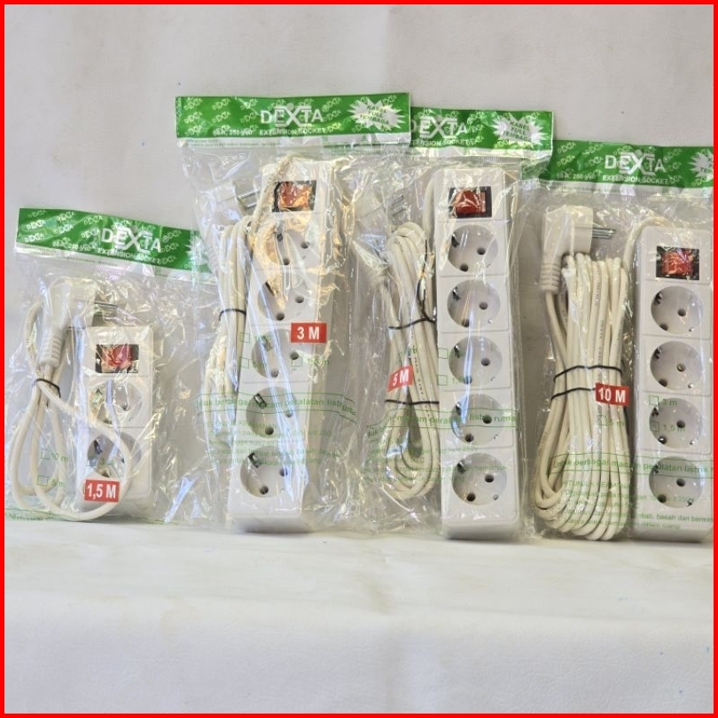 1 5 3 5 10 Meter Kabel Colokan Putih Dexta Sni 2 3 4 5 Lubang Full Tembaga Stop Kontak Arde Extension Switch Saklar Kabe