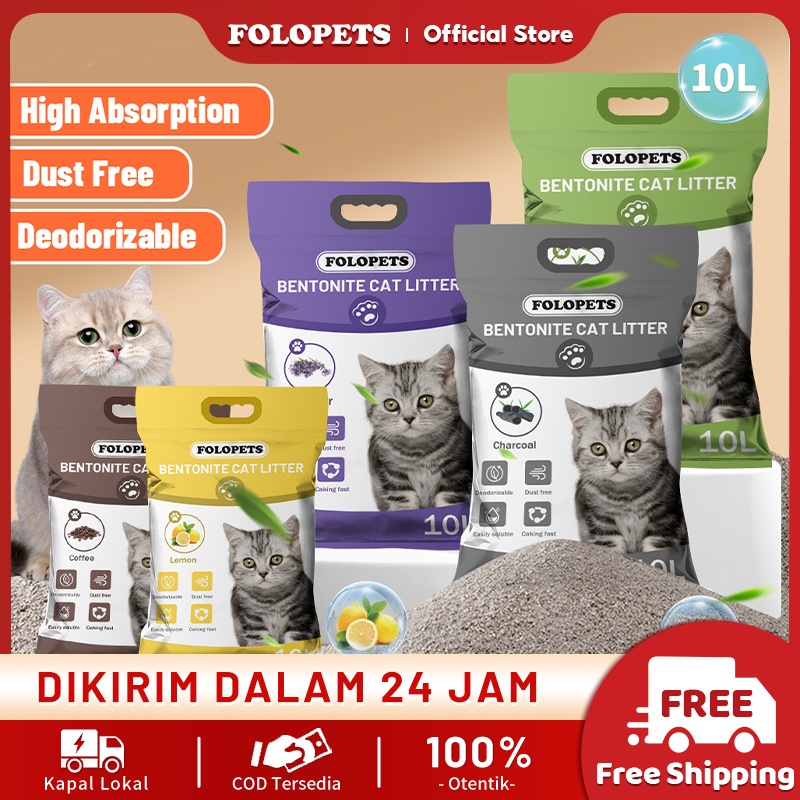 FOLOPETS PASIR KUCING 5/10 LITER - PASIR WANGI GUMPAL CAT LITTER 10L BENTONITE