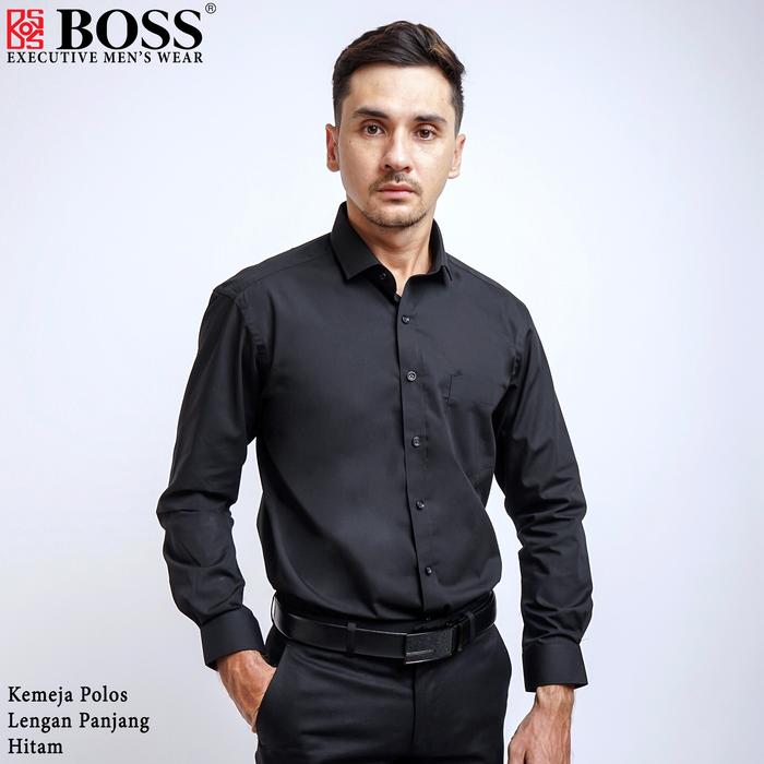 BOSS Kemeja Polos Pria Lengan Panjang Slim Fit Hitam - S