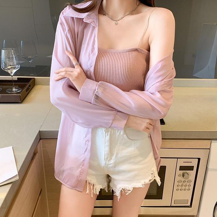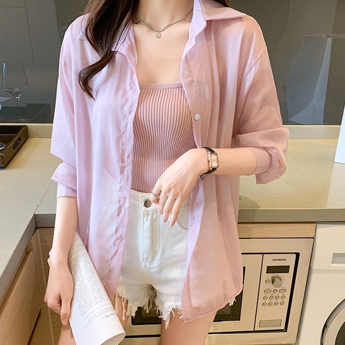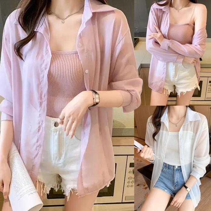 Kemeja Transparan/Kardigan Tipis Kecil Musim Panas Baru Oversize #W204Women's summer new summer thin small thin cardigan