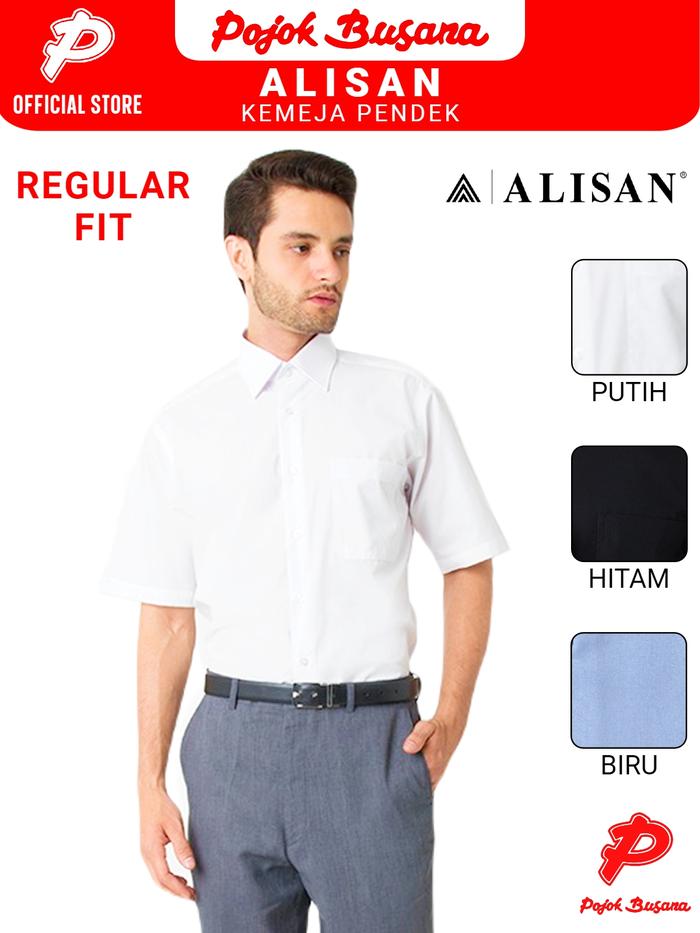 Pojok Busana Alisan Kemeja Lengan Pendek Polos Pria (Reguler) - Putih, 14 (XS)