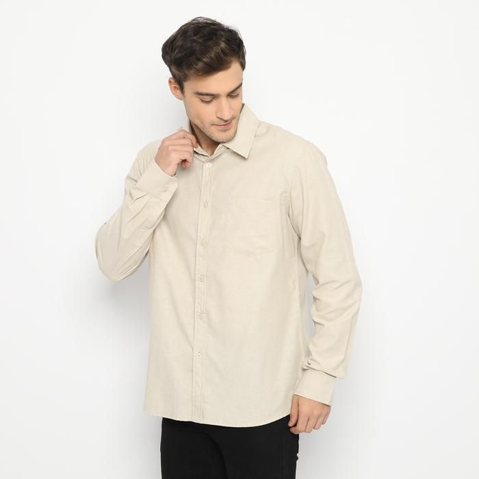 FICHINO Kemeja Pria Basic Polos Lengan Panjang Cream - XL