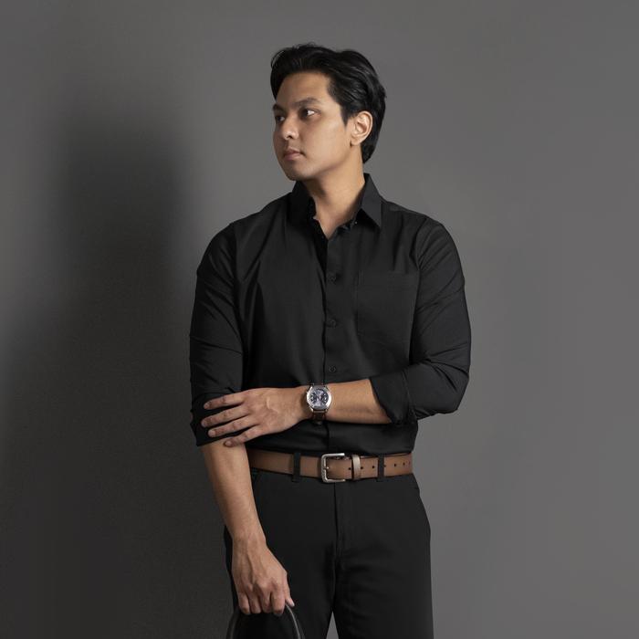 CUTOFF York Smart Shirt Kemeja Kerja Cotton Basic Formal Polos Pria Panjang Stretch - BLACK, M