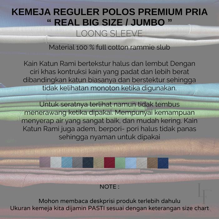 KEMEJA RAMI JUMBO LENGAN PANJANG XL - XXL - XXXL - XXXXL ( XL / 2XL / 3XL / 4XL ) KEMEJA POLOS REGULER JUMBO BIG SIZE LE