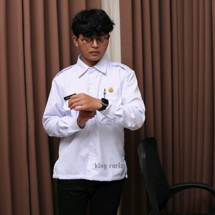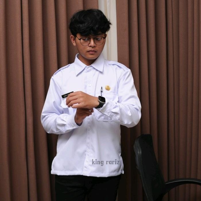 KEMEJA PUTIH SERAGAM DINAS PRIA KEMEJA PDH LENGAN PANJANG/PENDEK Katun Baju - PUTIH LENGAN PENDEK, S