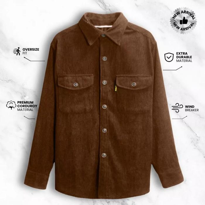 Guteninc - Kemeja Outer Overshirt Muller Corduroy Coffee Shirt - MULLER BLACK, S