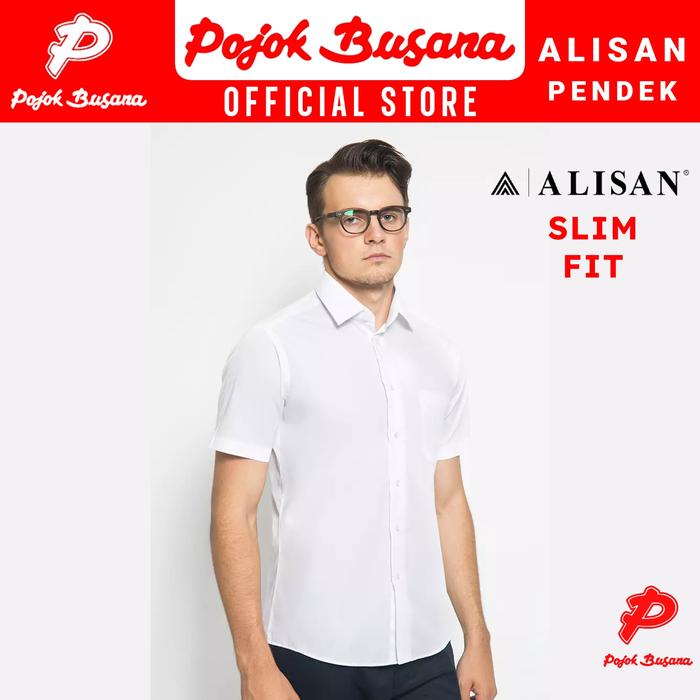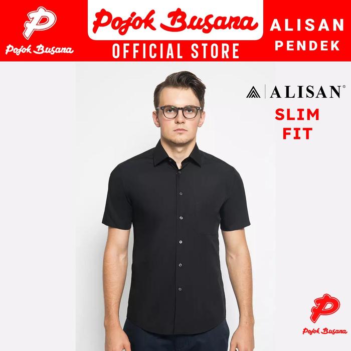 Pojok Busana Alisan Kemeja Lengan Pendek Polos Pria Slim Fit - Men Short Sleeve Shirt Formal Business - Kemeja Kantor Fo