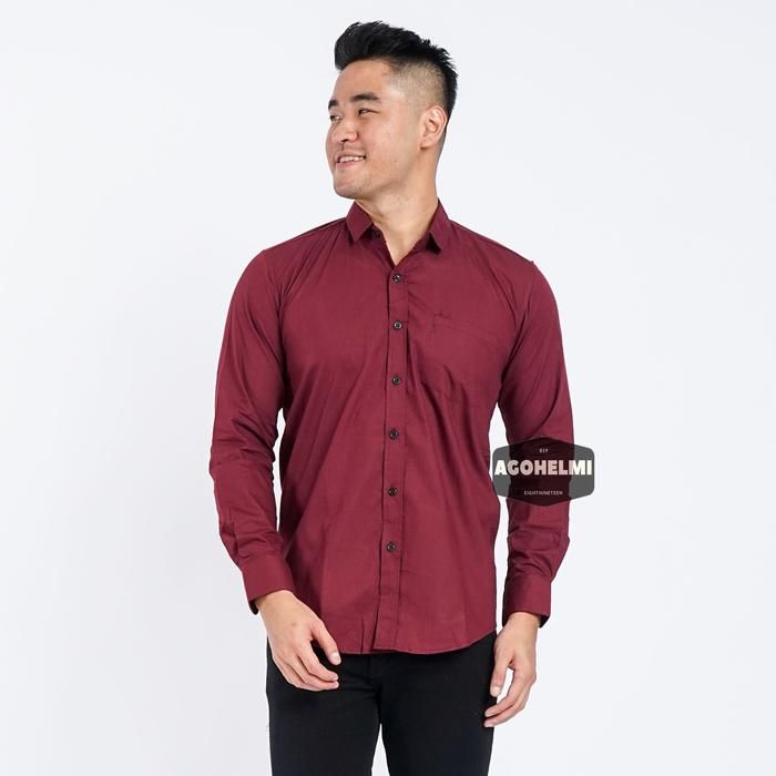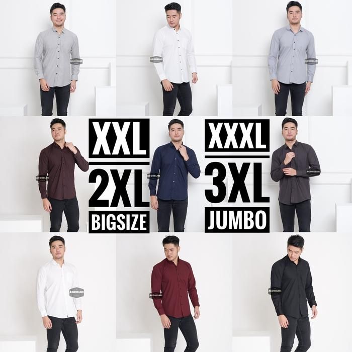 Kemeja Lengan Panjang Pria Polos Big Size XXXL TripleXL 3XL Jumbo - Hitam, XXXL