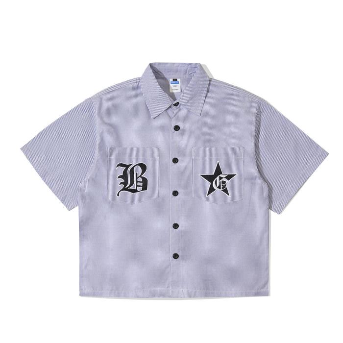 Kemeja Pendek | Stripe Blue | Bidstar | Boxy Fit | Brainsgland - M