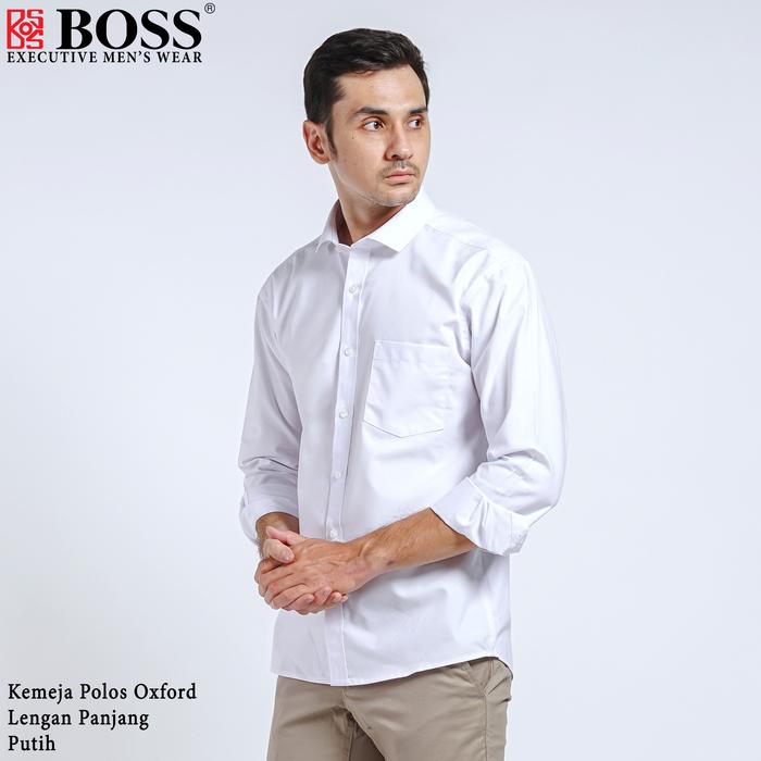 BOSS Kemeja Polos Pria Oxford Lengan Panjang Slim Fit OXK Putih - Slim Fit, XL