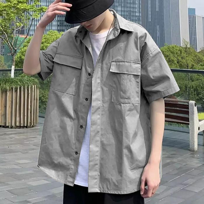 Amspro Kemeja Polos Oversize Atasan Pria PD-08 Baju Cowok Basic Nyaman Kantong - Sage Green, One Size