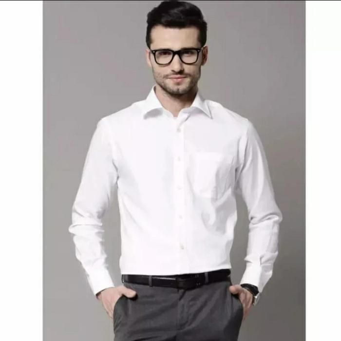 Kemeja pria Putih Kerah Lengan panjang Formal Standar S M L XL - Putih, S