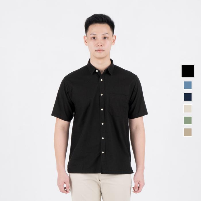 BENHILL Kemeja Pria Polos Linen Pendek New Colors 50329-51465 - Black, S