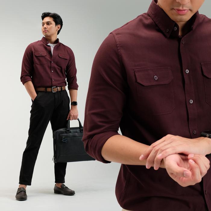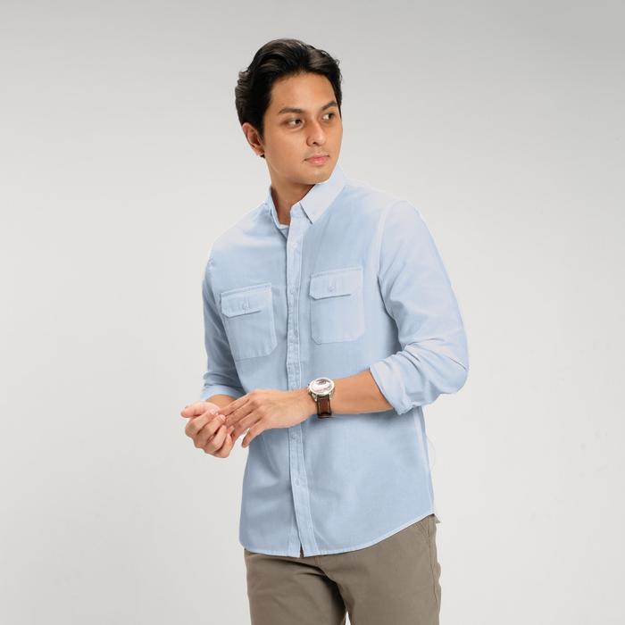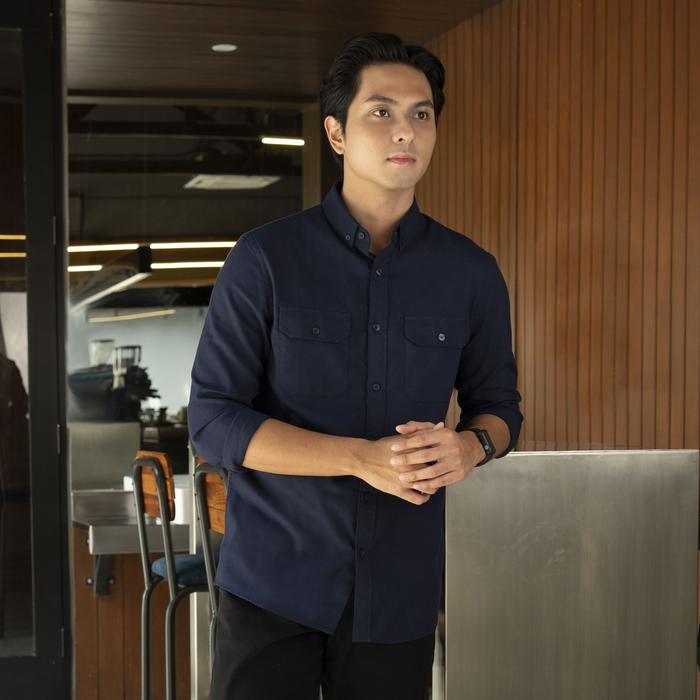 CUTOFF Denzel Oxford Workshirt Kemeja Kerja Polos Pria Panjang - NAVY, S