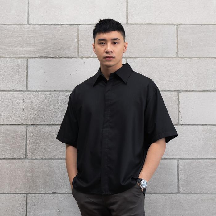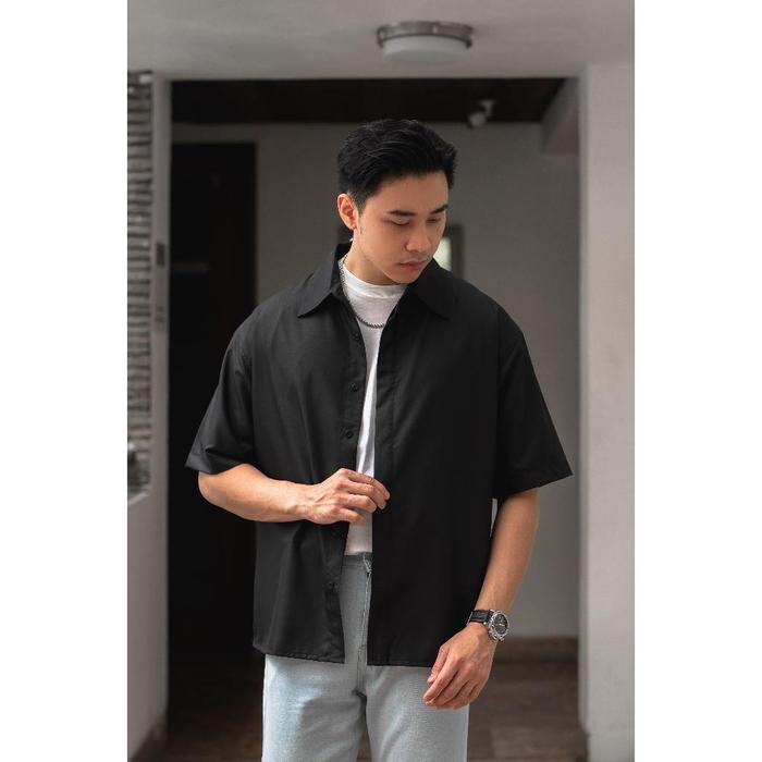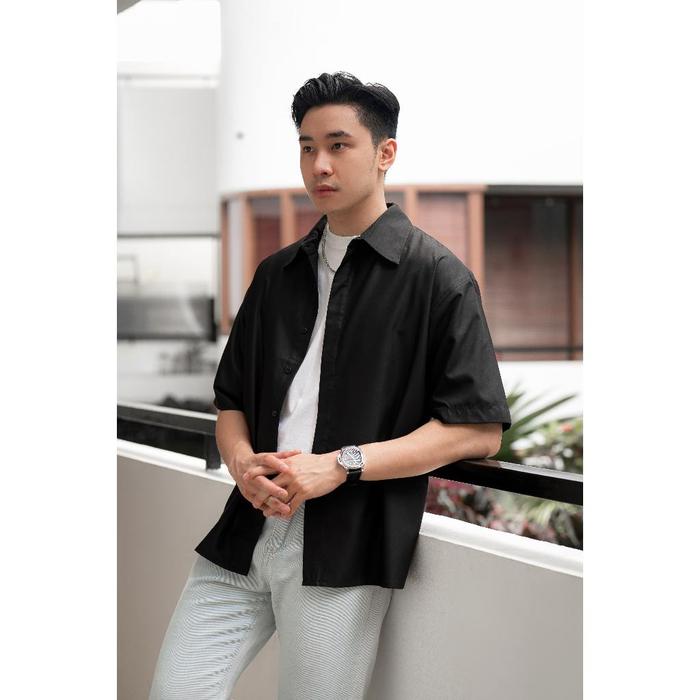 Hakone Kemeja Boxy Fit Superfine Cotton In Black - Kemeja Boxy Premium Lengan Pendek Hitam - BYBLANK - S