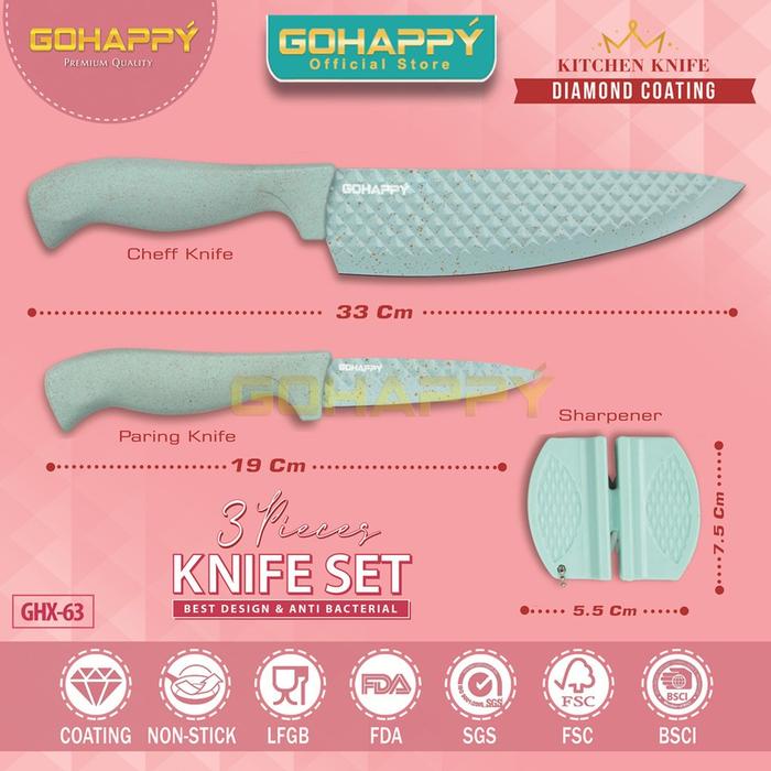 GOHAPPY PISAU SET Dengan Talenan Anti Bakteri knife set - P.Diamond 3pink