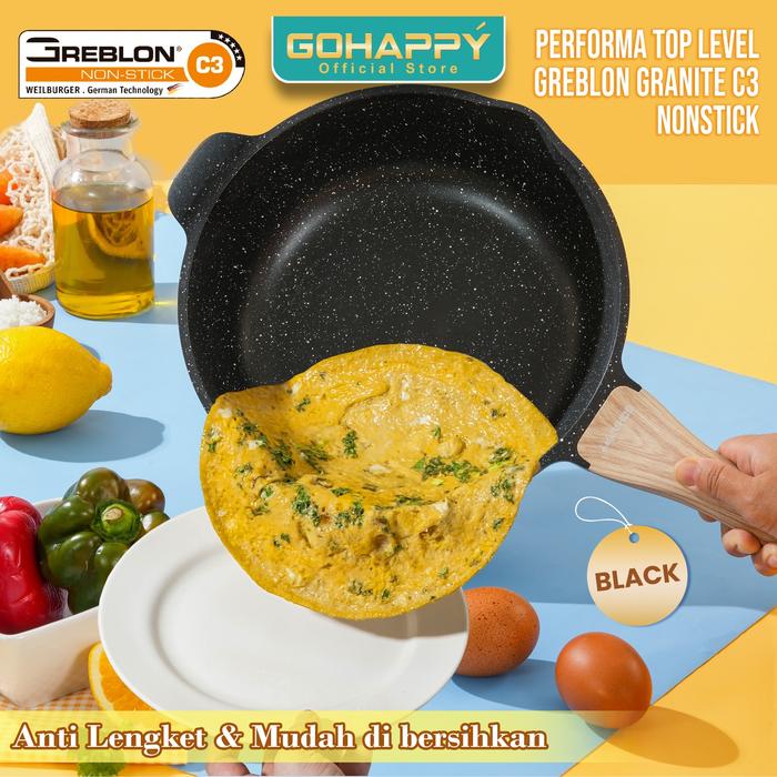 PANCI SET ANTI LENGKET 5 PCS GOHAPPY GRANITE GREBLON GERMANY ( WOK + SAUCE + FRY PAN) Granit Kaca - Set 5pc Cream