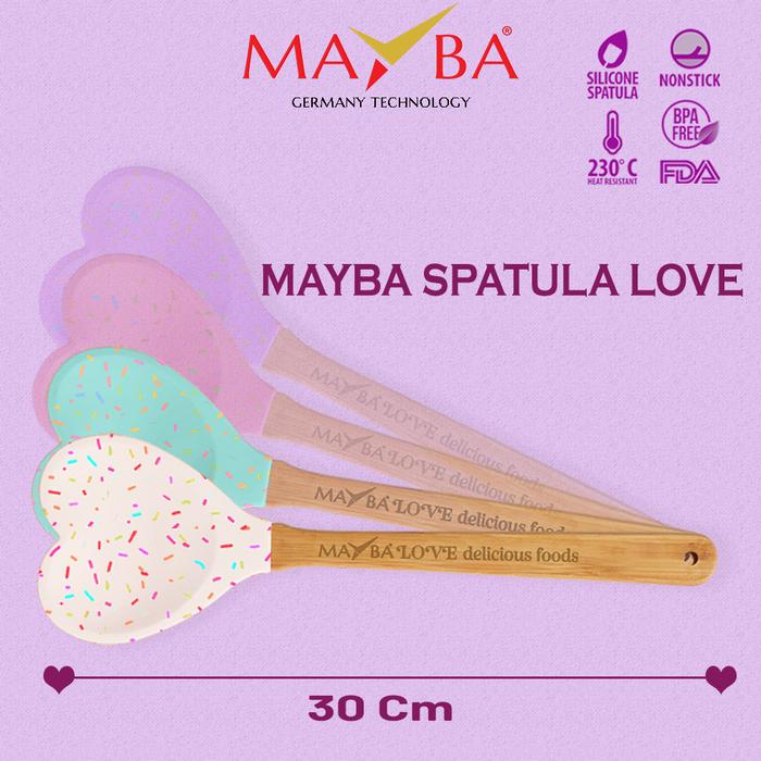 SPATULA SILICONE LOVE MAYBA Sodet sutil motif hati warna pastel pink tosca cream lavender masak sendok Silikon - Pink