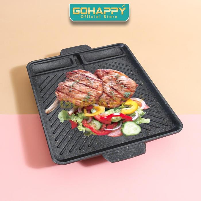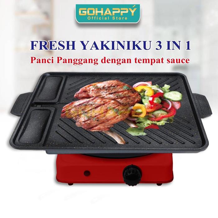 Alat Panggang Yakiniku GM BBQ Marble ANTI LENGKET/ANTI KARAT arang wadah Kitchenware Merah - 2158 FRESH YAKINIKU 3 IN 1