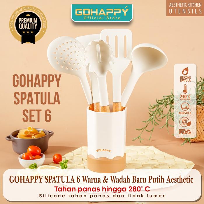 SPATULA SET 6 PCS GOHAPPY PLUS Bucket Wadah premium SENDOK MASAK DAPUR FULLSET MODERN TERBAIK UNTUK KELUARGA