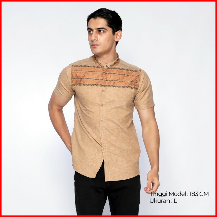 Casella Baju Koko Pria Lengan Pendek Baju Koko Hadid Horizontal 4041 Hazelnut