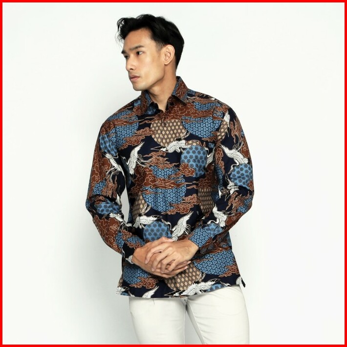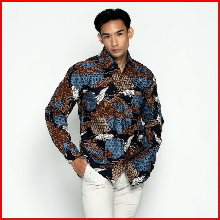 Casella Kemeja Batik Pria Lengan Panjang Premium Baju Kemeja Batik Pandawa Arjuna Blue 702
