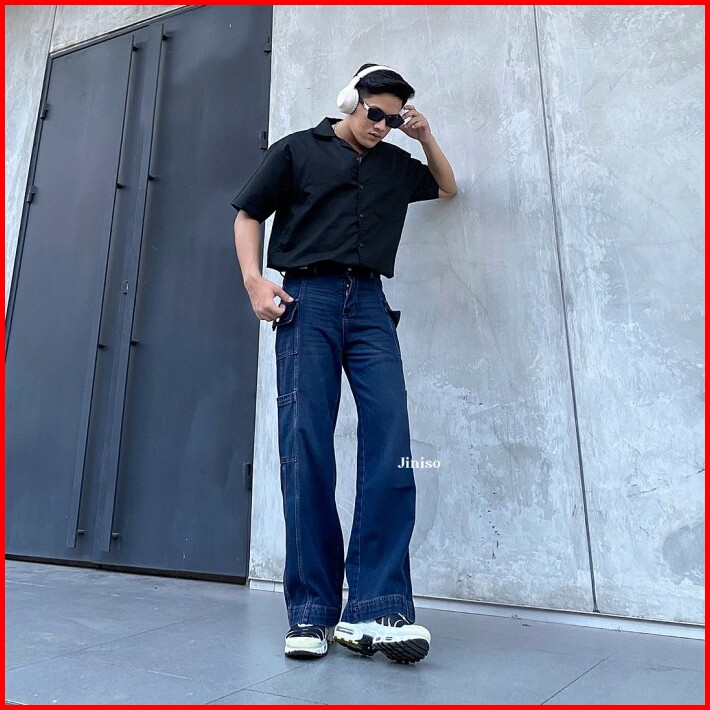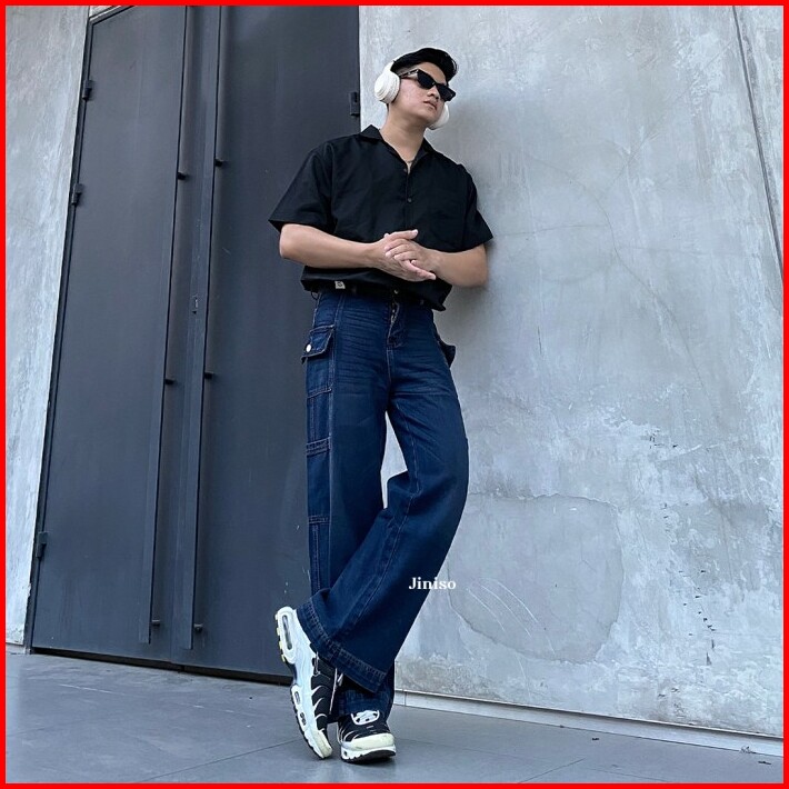 Jiniso Cargo Baggy Denim Jeans Pria 416