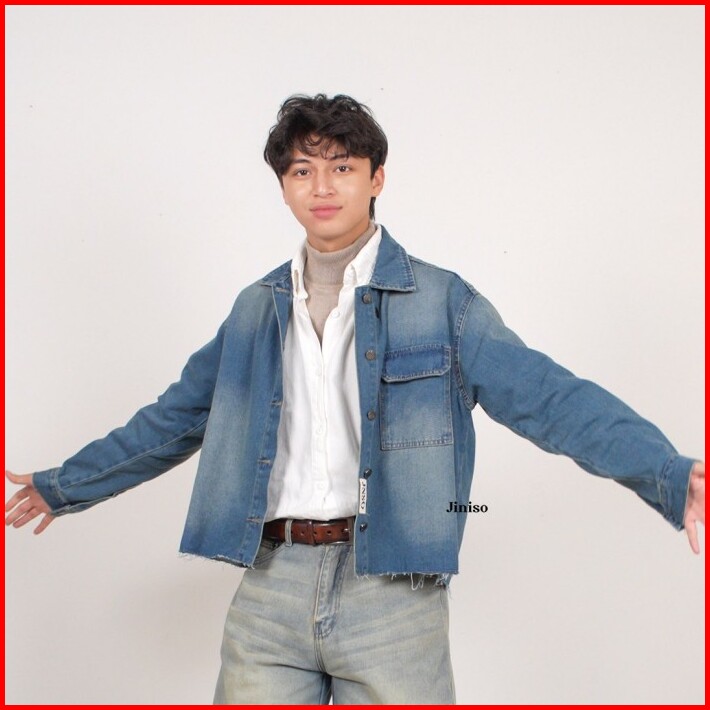 Jiniso Pria Jaket Jeans Oversize Seoul Blue Wash
