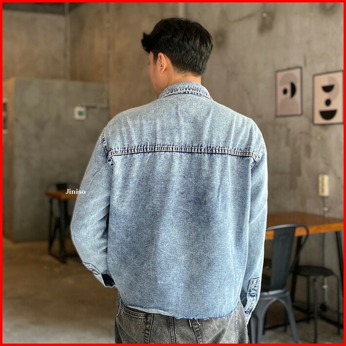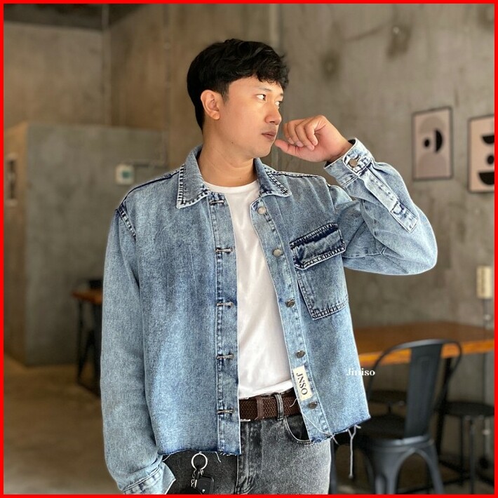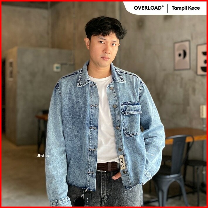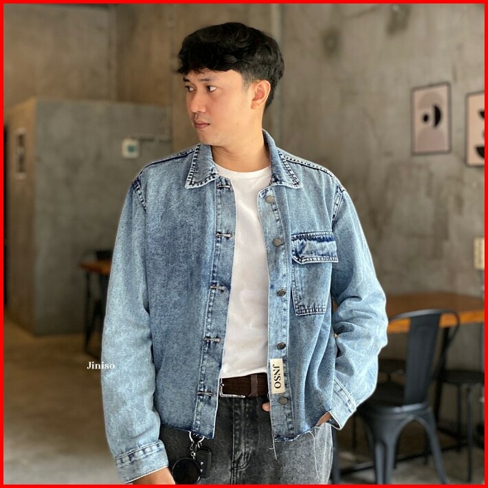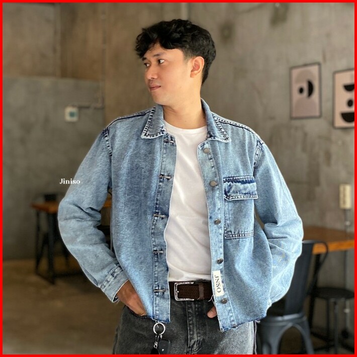 Jiniso Pria Jaket Jeans Oversize Seoul Blue Acid