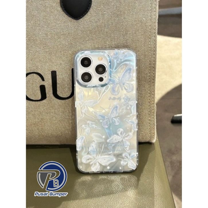 Ss910 New! Blue Butterfly Textured Waterry Ripple Hologram With Charm Case Iphone - Hardcase/Casing Hp Compatible For Sa