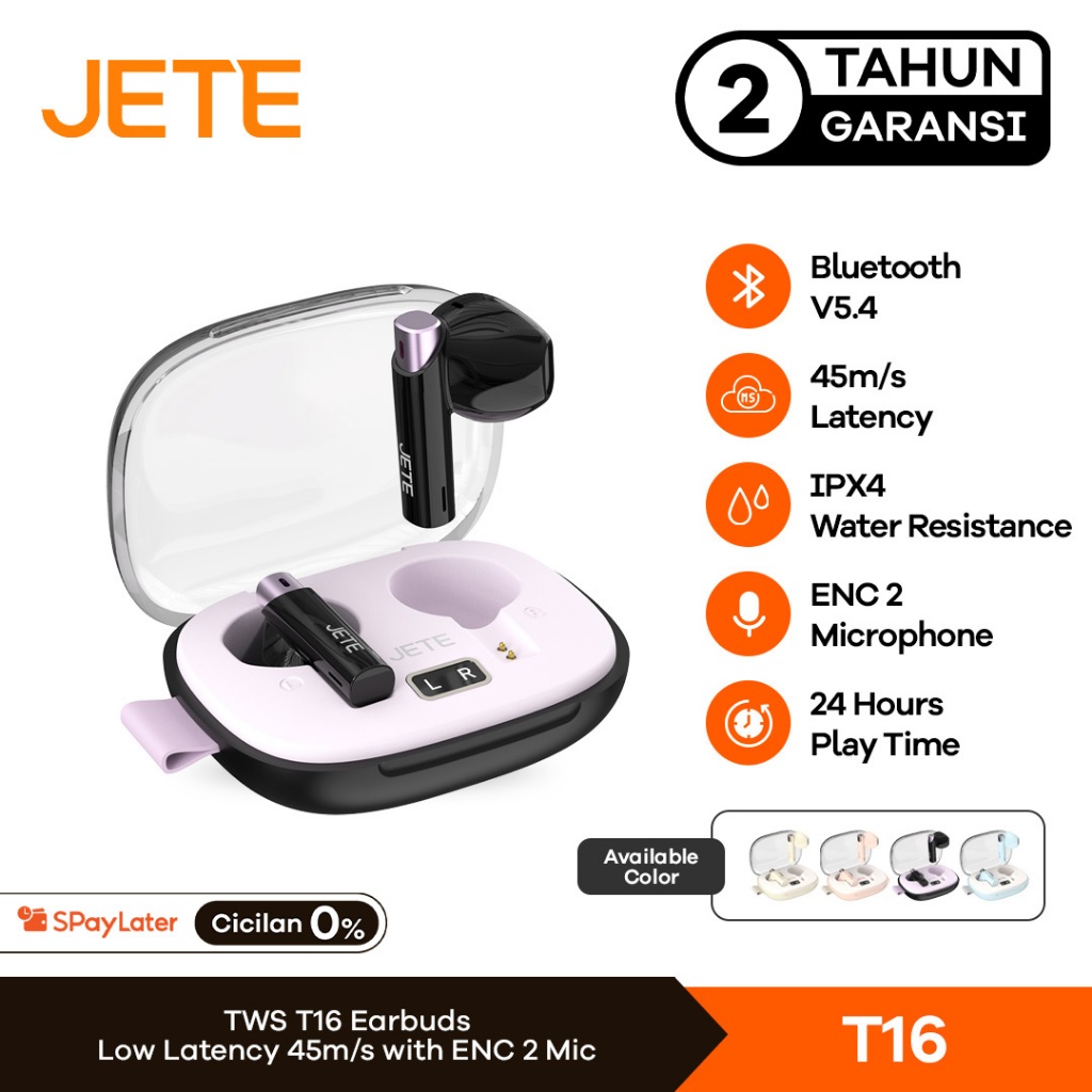 JETE T16 TWS GAMING HEADSET BLUETOOTH 2 MODE EARPHONE WIRELESS IPX4 GARANSI 2 TAHUN ORIGINAL OFFICIAL STORE