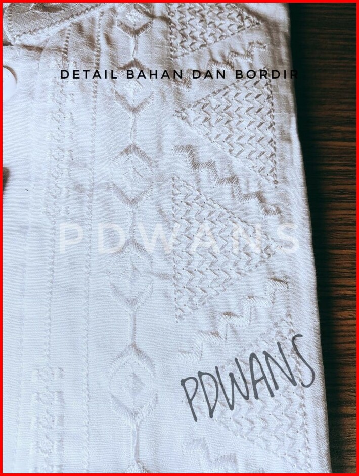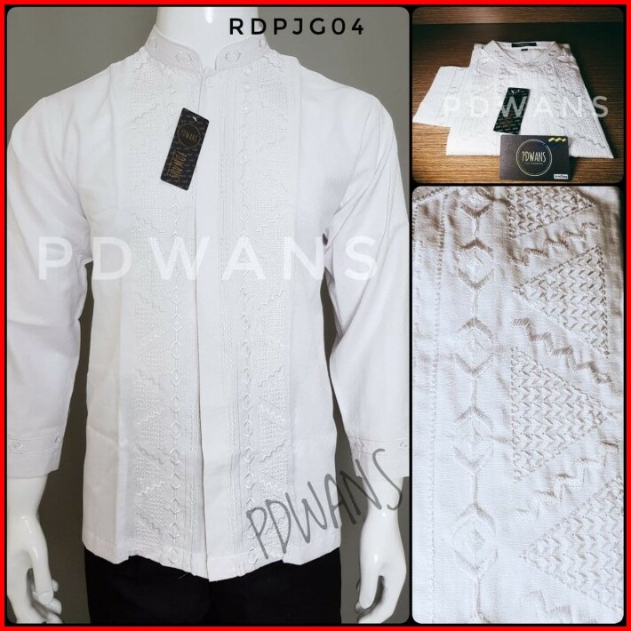 Baju Koko Muslim Bordir Lengan Panjang Putih Bersih Pdwans