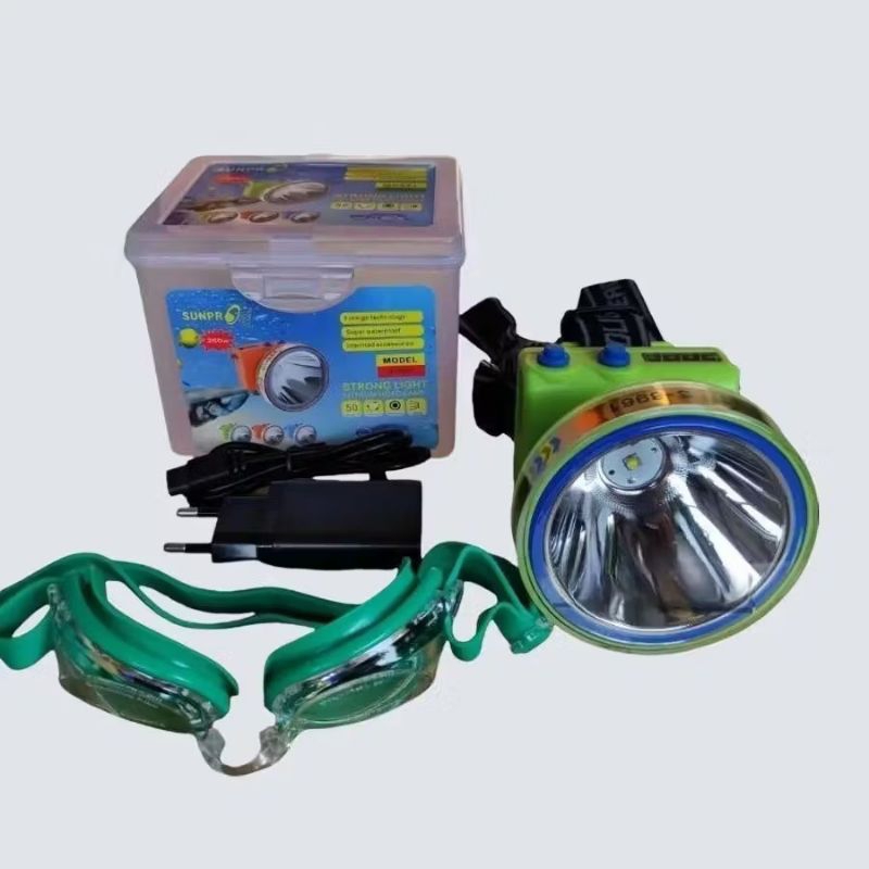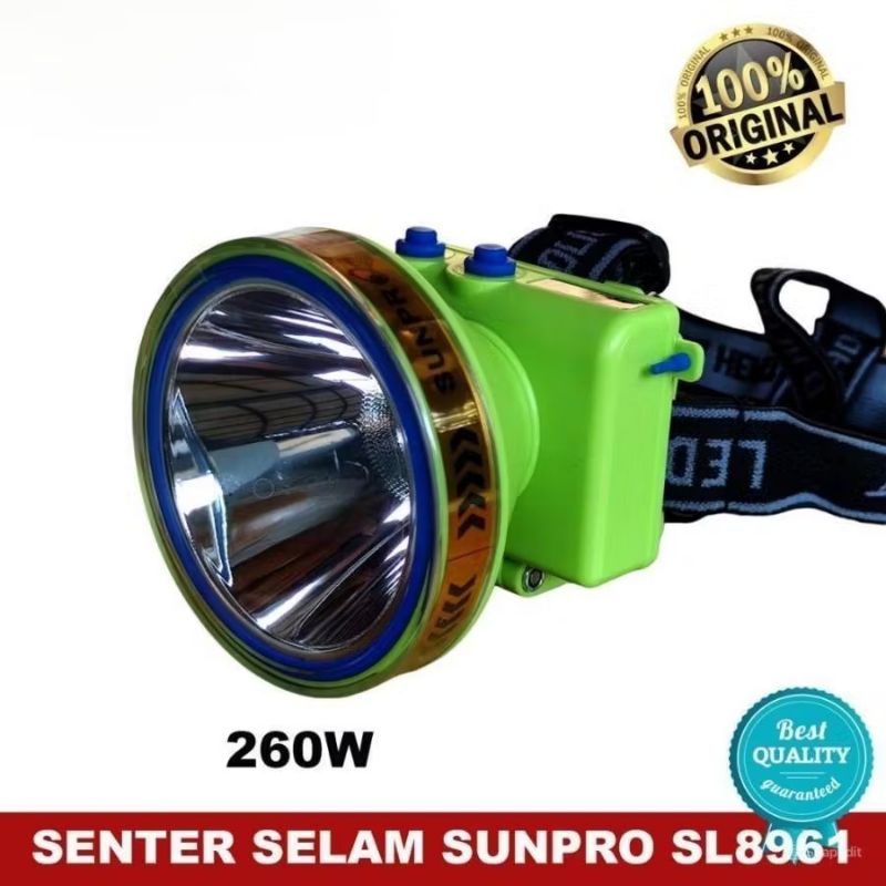 Senter Kepala LED Selam Diving 260 Watt Sunpro S-8961 Cahaya Putih Waterproof Super Terang Batre 4000mAh Tahan Hingga 12