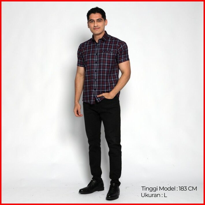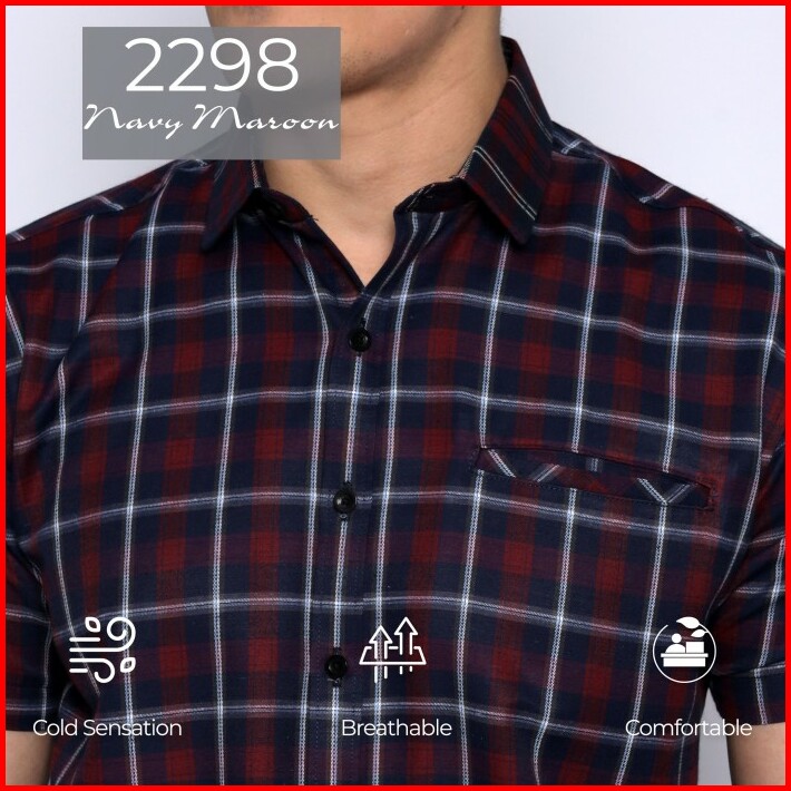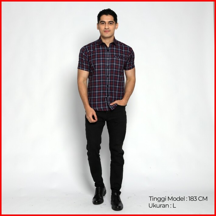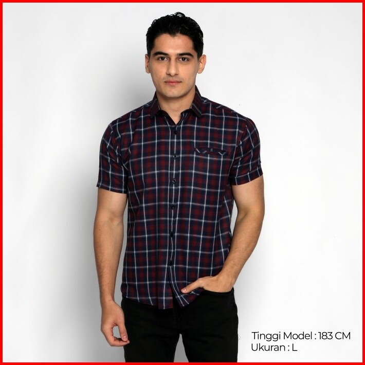 Simple Perfect Kemeja Chicago Pria Lengan Pendek Premium Motif Kotak 2298 Navy Maroon