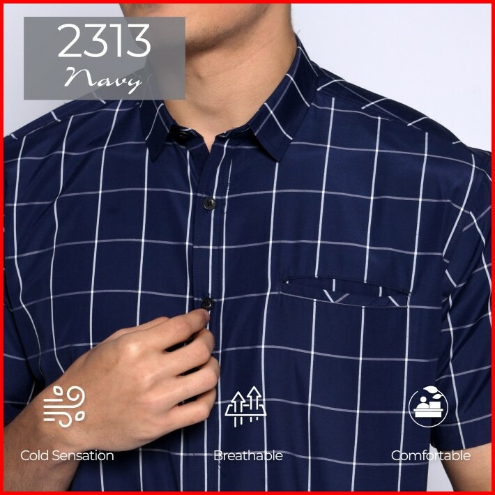 Simple Perfect Kemeja Chicago Pria Lengan Pendek Premium Motif Kotak 2313 Navy