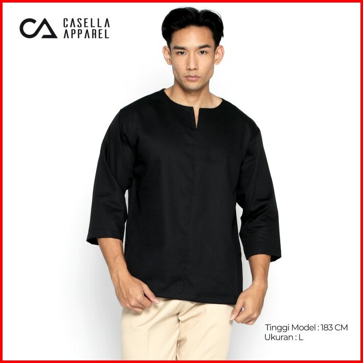 Casella Baju Kasual Basic Polos Pria Lengan 7 8 Daily Wear Noah 5029 Black