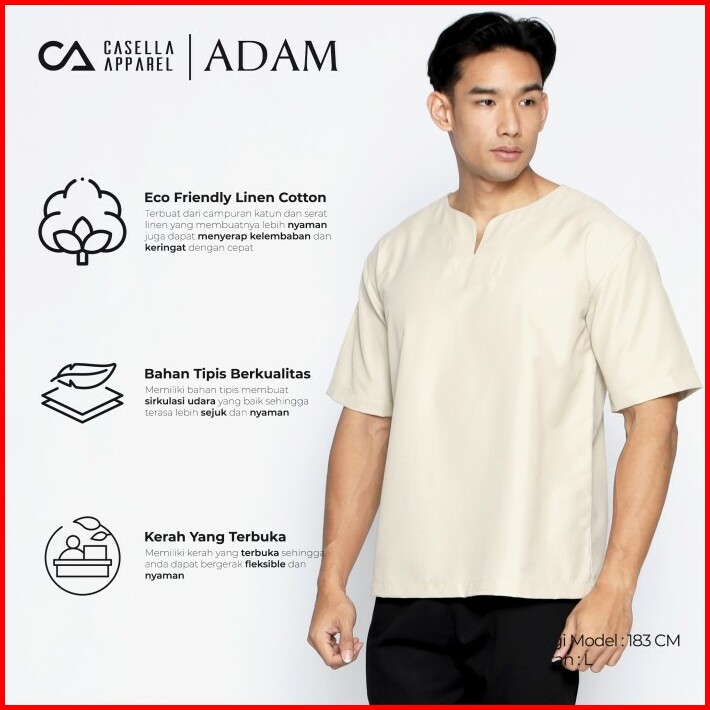 Casella Baju Kasual Basic Polos Pria Lengan Pendek Daily Wear Adam 3004 Khaki