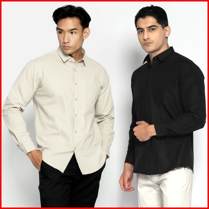 Simple Perfect Kemeja Pria Lengan Panjang Polos Premium Solid Basic Gallant Shirt
