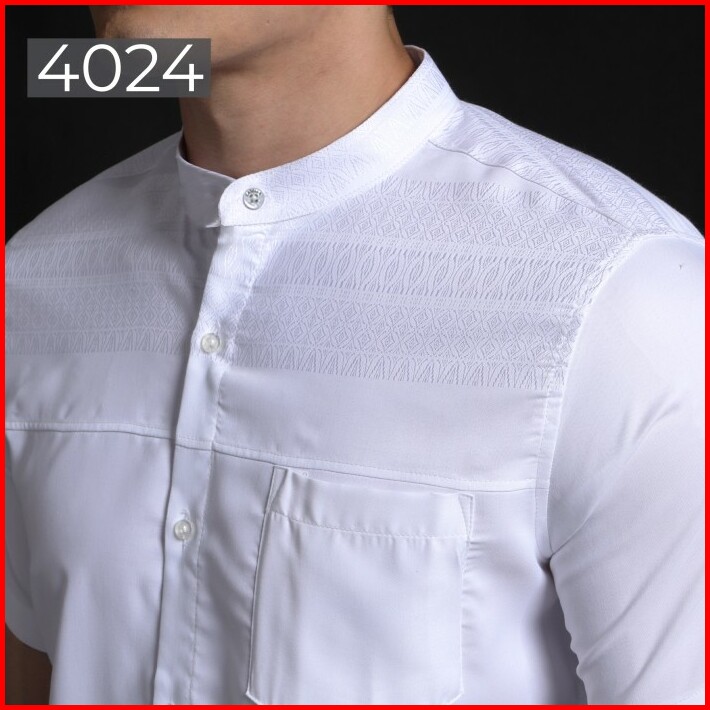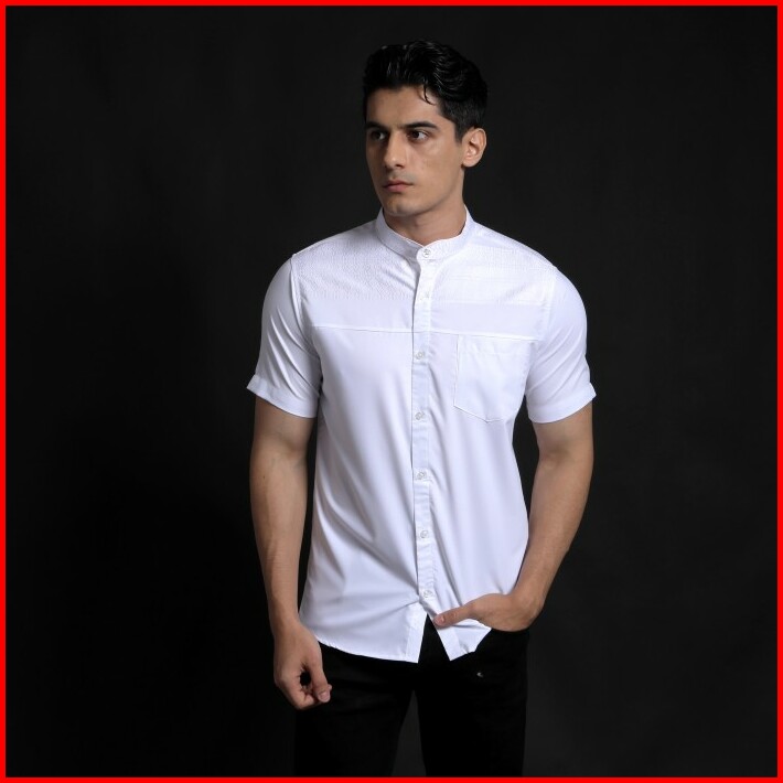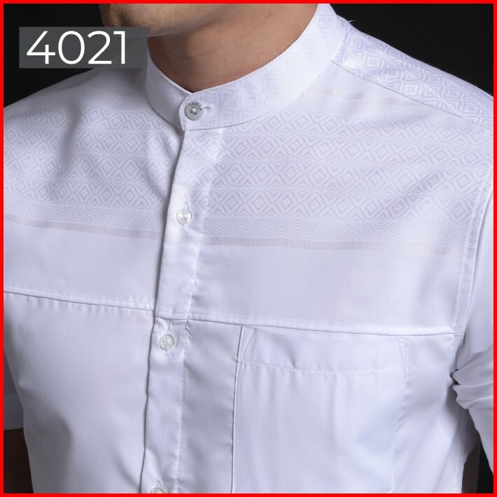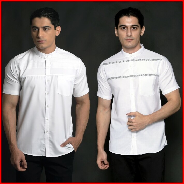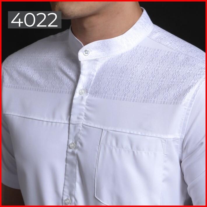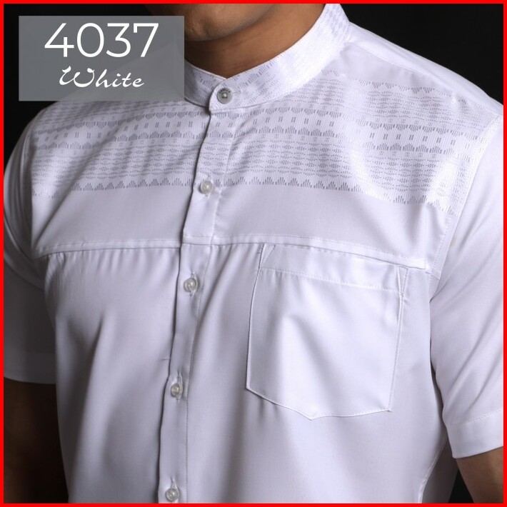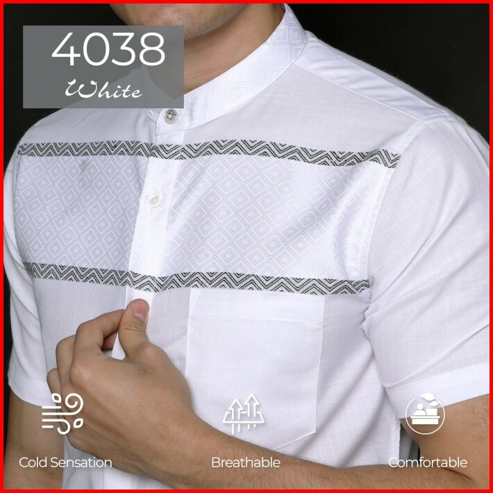 Casella Baju Koko Pria Lengan Pendek Premium Horizontal White Koko Elegant Ismail