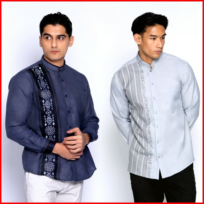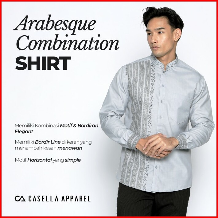 Casella Baju Koko Pria Lengan Panjang Arabesque Combination Design