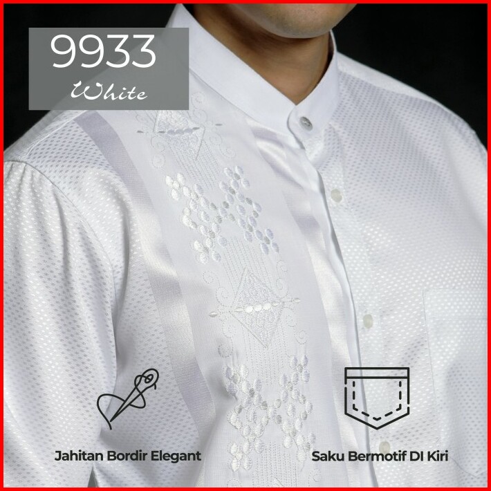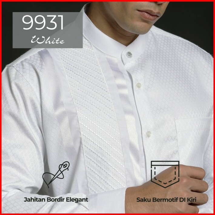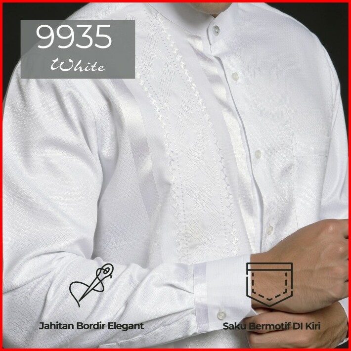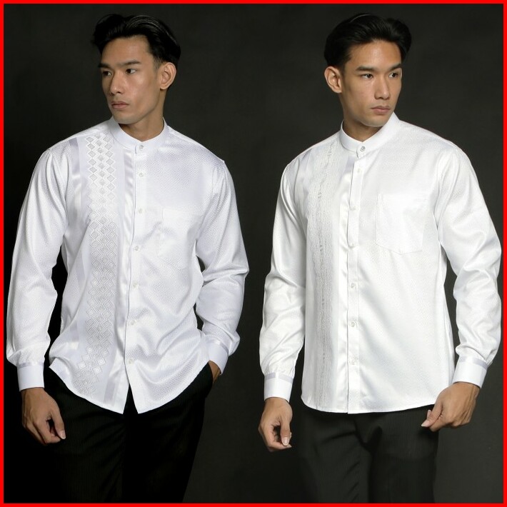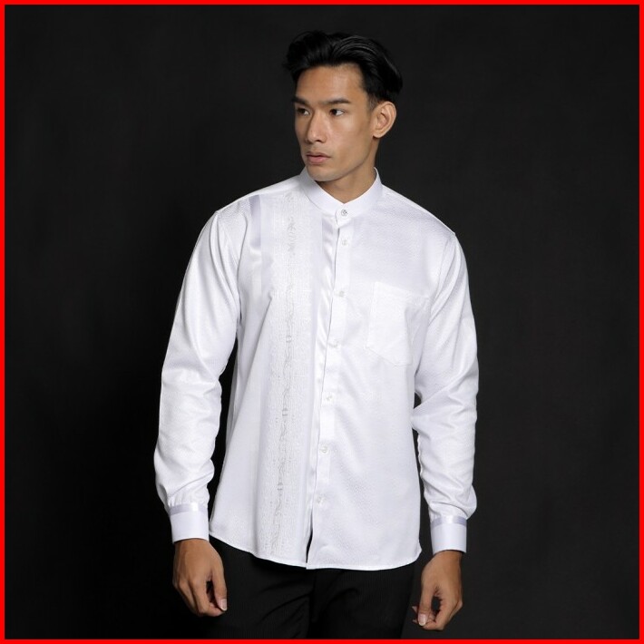 Casella Baju Koko Pria Lengan Panjang Arabesque Combination White