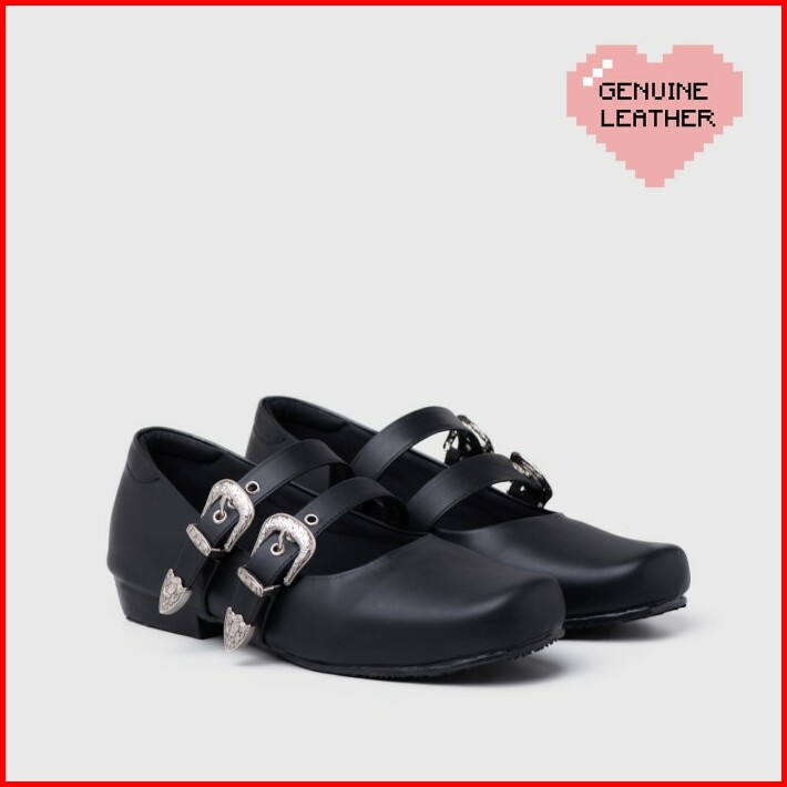 Baleva Flat Shoes Genuine Leather Pantera Black
