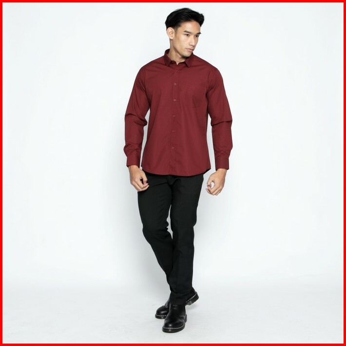 Simple Perfect Kemeja Pria Lengan Panjang Polos Solid Basic 7714 Maroon Kemeja Gallant