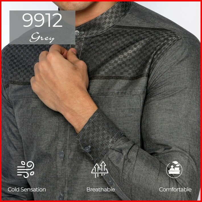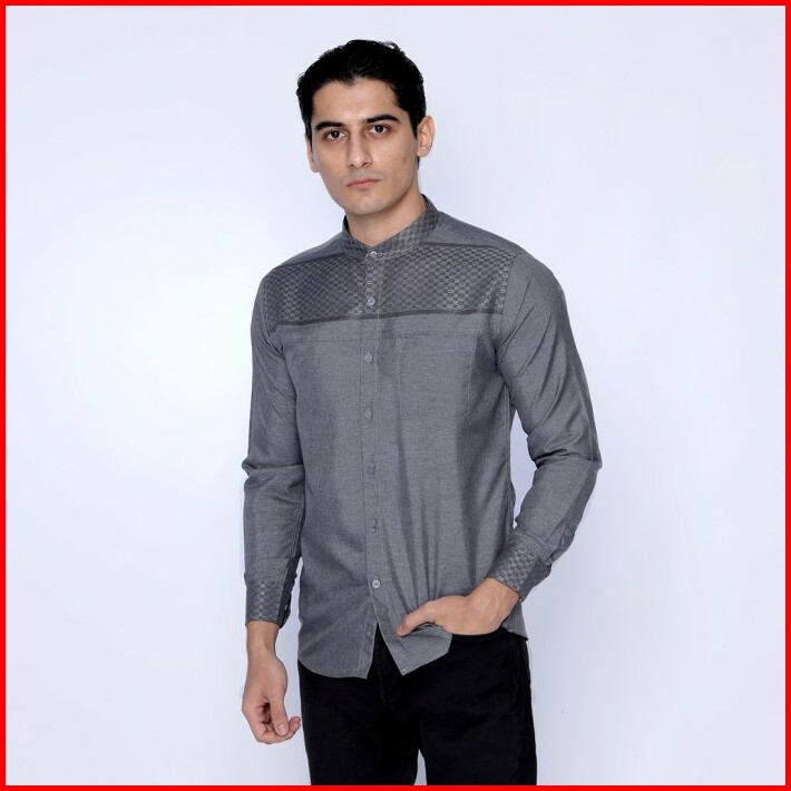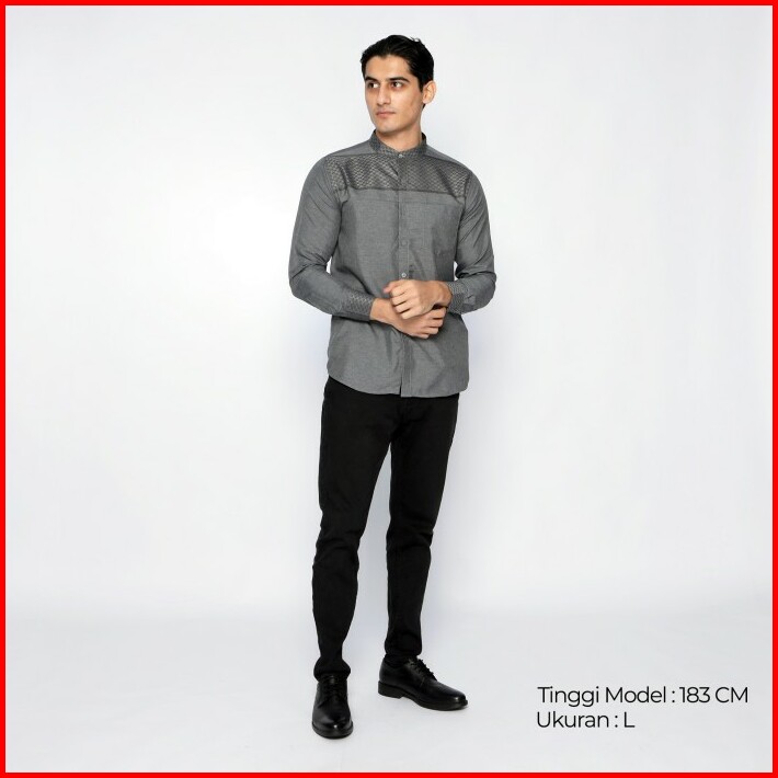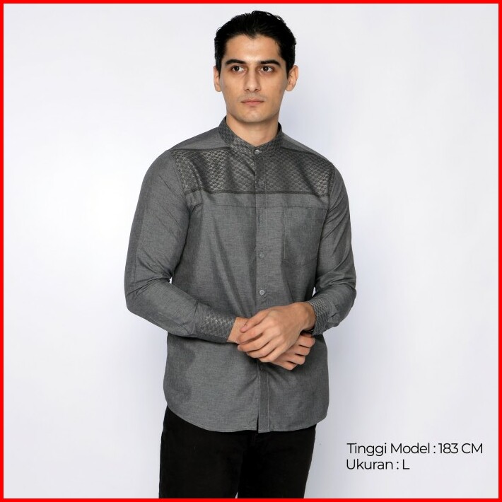 Casella Baju Koko Pria Lengan Panjang Baju Koko Hassan Horizontal 9912 Grey