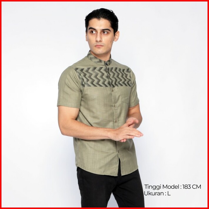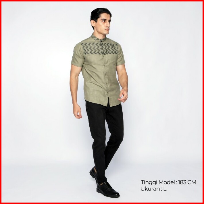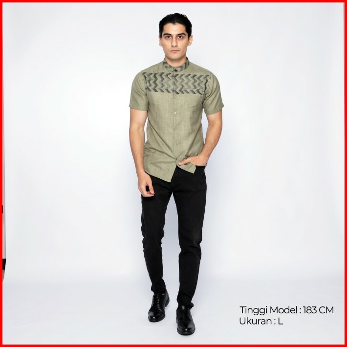 Casella Baju Koko Pria Lengan Pendek Baju Koko Hadid Horizontal 4043 Green Olive