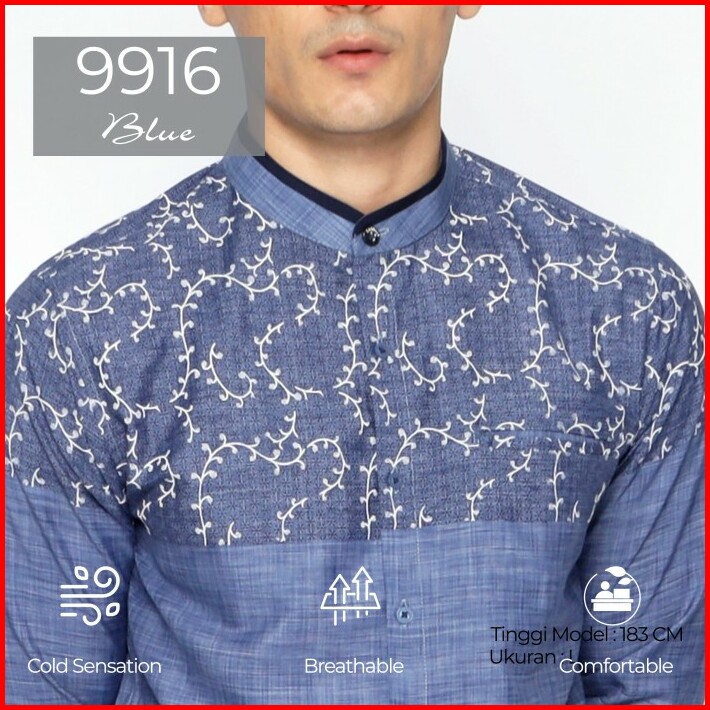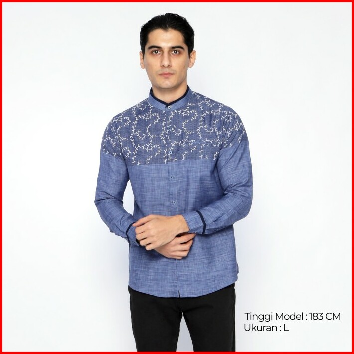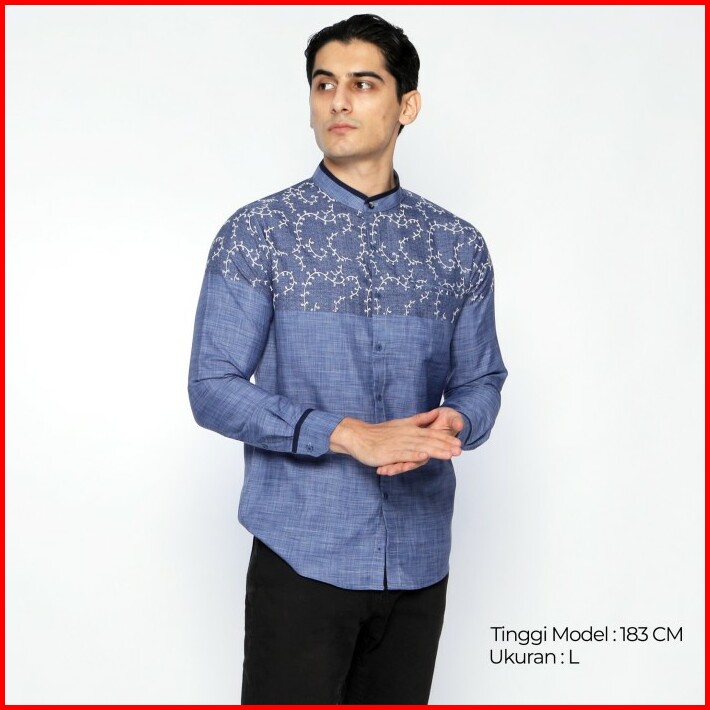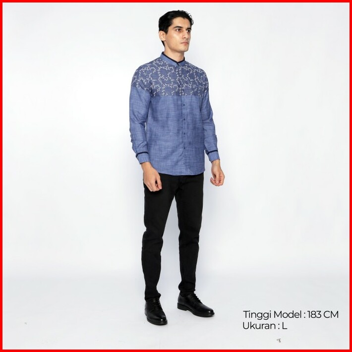 Casella Baju Koko Pria Lengan Panjang Hussein Horizontal 9916 Blue