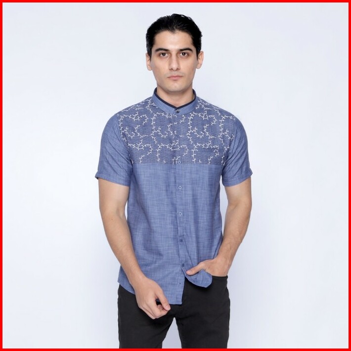 Casella Baju Koko Pria Lengan Pendek Hussein Horizontal Pattern 4044 Blue