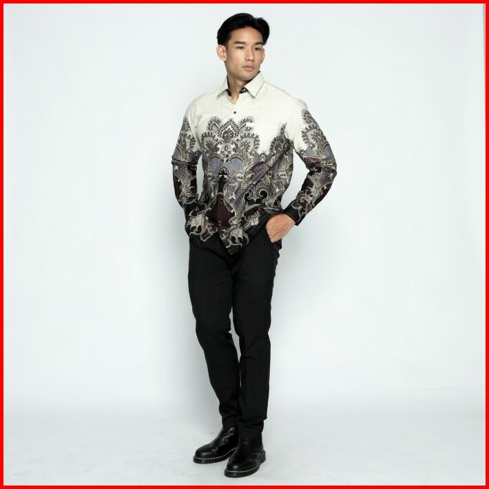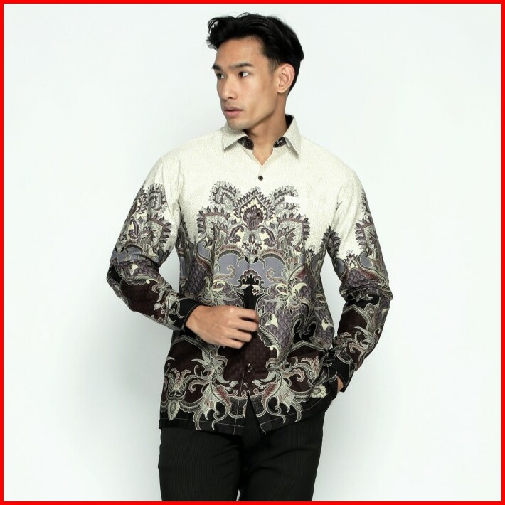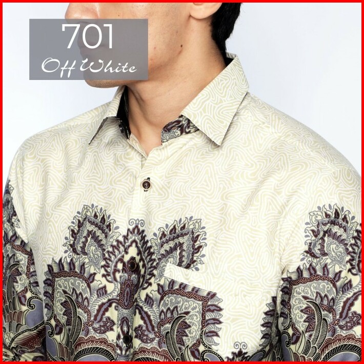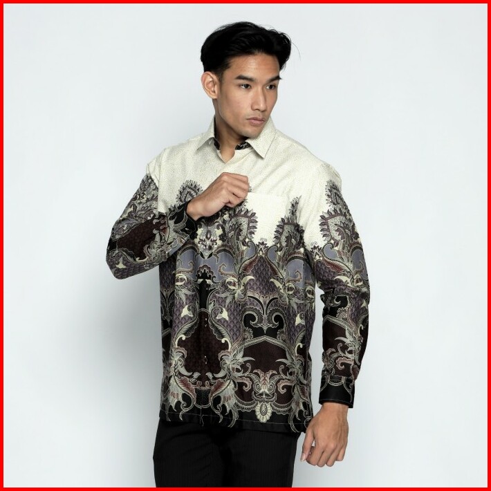 Casella Kemeja Batik Pria Lengan Panjang Premium Baju Kemeja Batik Pandawa Yudhistira Off White 701